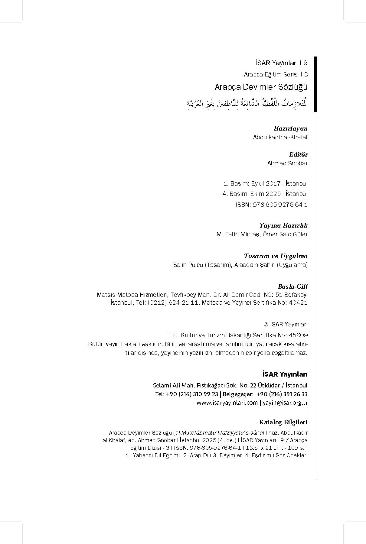 | Dil | Arapça, Türkçe |